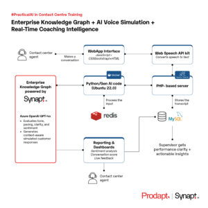 Prodapt developed an end-to-end, AI-powered voice simulation engine that lets agents practice real customer scenarios, receive instant feedback, and continuously improve—all through a lifelike AI customer.