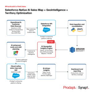 Prodapt engineered a Salesforce-native Geo-AI Sales Intelligence Platform that turns every rep’s mobile device into a live, context-rich territory navigator. Built on a cloud-native, high-scale architecture, the platform transforms fragmented field execution into precise, data-driven action.